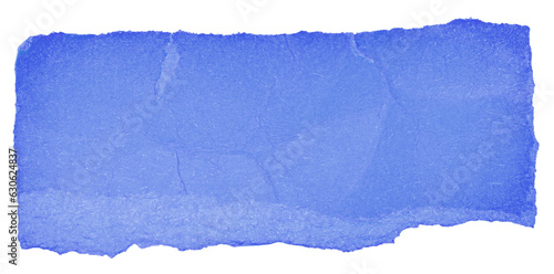 Single piece of isolated ripped crumpled blank blue paper with copy space for text on white or transparent background