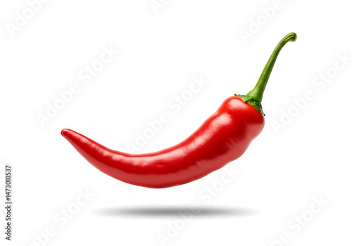 Single Red Chili Pepper Isolated on White Background