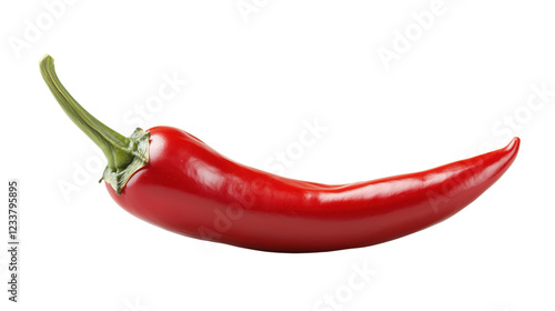 Single Red Chili Pepper with Fresh Shine Isolated on Transparent Background