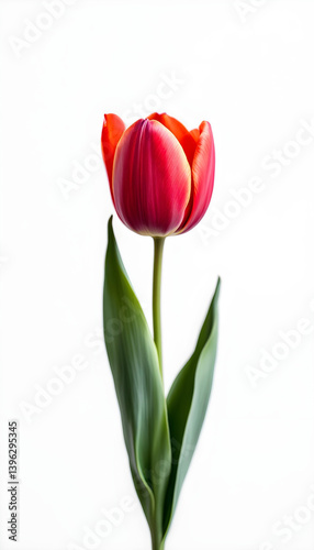 Single Red Tulip on White Background - Springtime Floral Elegance for Vacations and Celebrations - isolated background high resolution premium collection