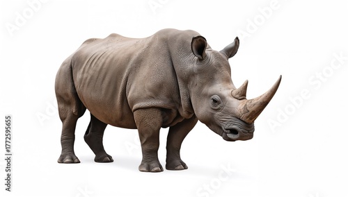 Single rhinoceros on a plain white background