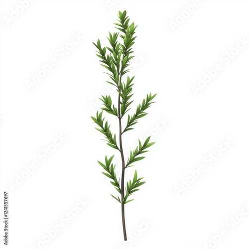 Single sprig of green foliage against a white background.