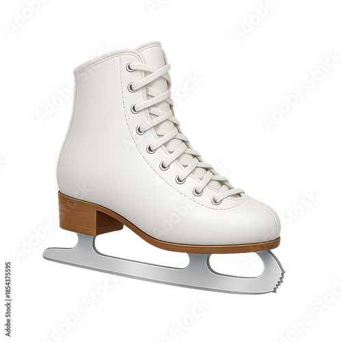 Single White Ice Skate with Laces Isolated on White