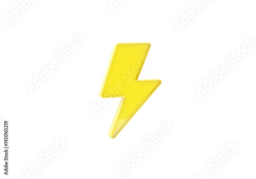 Single yellow lightning bolt on a completely solid dark space on transparent background