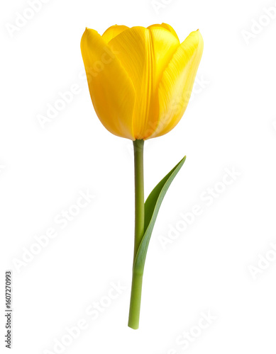 Single Yellow Tulip Photographed Upright Centered on Pure White Background Clean and Elegant Floral Image