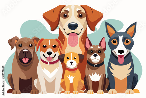 Six Adorable Dogs Sitting Together, Smiling and Happy