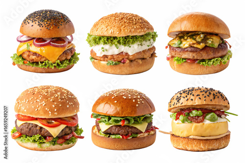 Six Delicious Burger Variations A Culinary Collection Isolated On Transparent Background