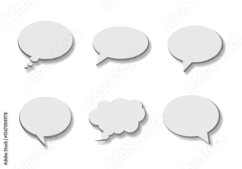 Six Gray Speech Bubbles with 3D Effect and Shadows Various Shapes and Sizes.