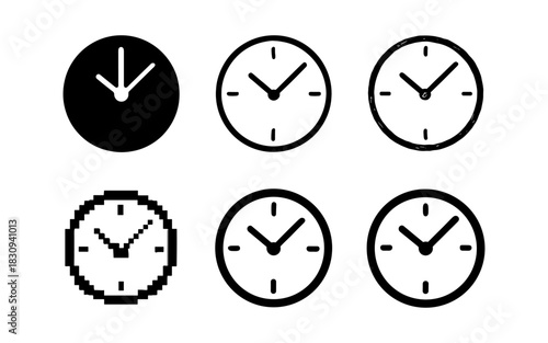 Six unique clock designs in minimalistic and pixel styles for time-themed projects