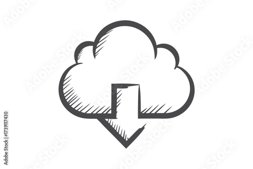 Sketched cloud with downward pointing arrow emphasizes data downloading within a creative minimal design