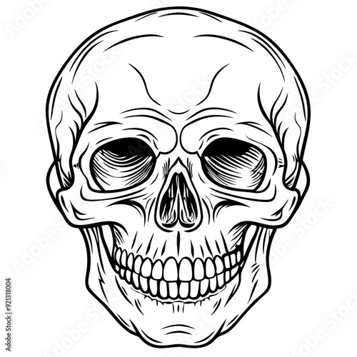 Skull Illustration Black and White Vector Art Halloween Graphic Design Tattoo Template