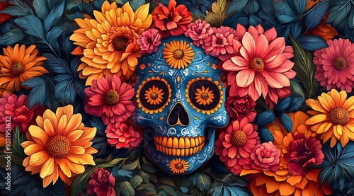 Skull Surrounded by Flowers