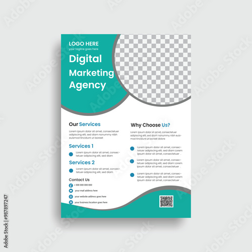 Sky blue and white color of element variation Corporate business flyer design template or Brochure business flyer design ,with geometric shapes in a4 size