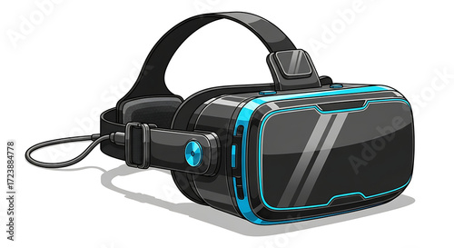 Sleek and futuristic virtual reality headset with glowing blue accents, an immersive entertainment device isolated on a white background