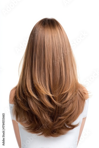 Sleek and Shiny Long Hair with Warm Brown Shades from Back View