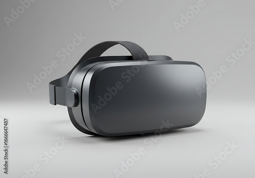 Sleek black virtual reality headset isolated on grey background.