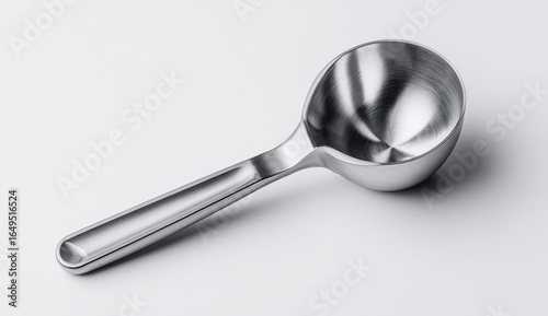 Sleek, metallic measuring spoon on white background
