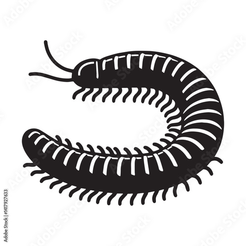 Sleek Millipede silhouette, a natural representation in shadow – Millipede illustration – Minimalist millipede vector – Insect silhouette