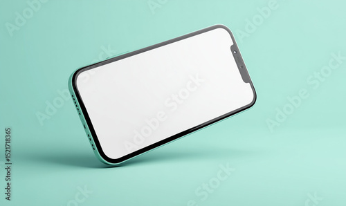 Sleek smartphone floating, showcasing a pristine, blank screen perfect for digital content, with a minimal design.