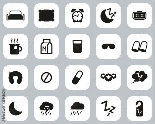 Sleep Or Sleeping Icons Black & White Flat Design Set Big