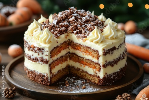 Slice of carrot cake missing from whole cake.