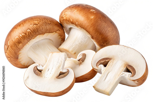 Sliced mushrooms isolated on transparent background