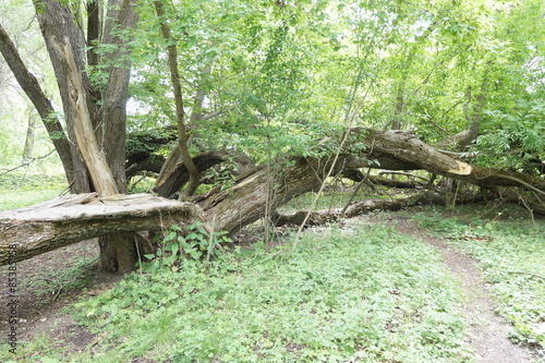 Сломанные деревья и заросли кустарника