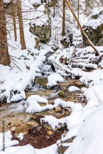Slovakia national park Mala Fatra, Janosikove diery, Terchova village. Paths in the frost, winter. Hiking and tourism in Slovakia, central Europe