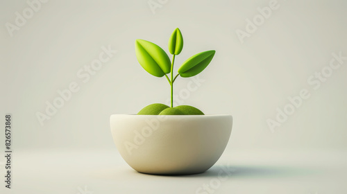 Small green plant in a terracotta pot, set against a neutral background, creating a minimalistic and clean image.