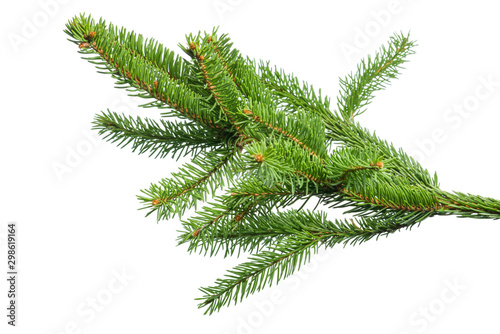 Small green spruce branch isolated on white background
