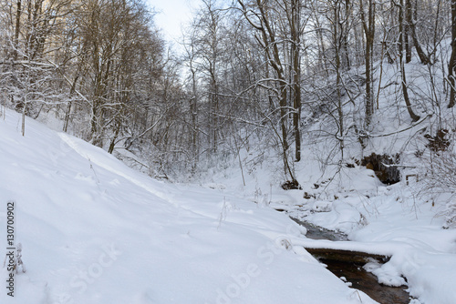small river in the winter forest ravine