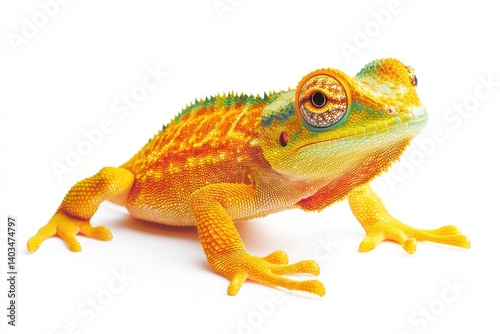 Small, vibrant lizard against white background