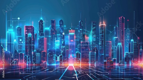 Smart city connection dot point connect with line network technology metaverse concept Big data
