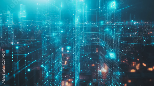 Smart digital Innovation city with connection network reciprocity over the cityscape. of future smart wireless digital city and social media networking systems that connects people with in city