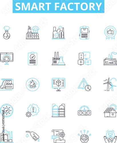 Smart factory vector line icons set. Smart, Factory, Automation, Digital, IoT, Intelligent, Manufacturing illustration outline concept symbols and signs