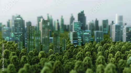 Smart green city with digital features and eco-friendly design, future urban landscape, sustainable technology