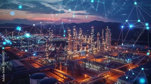 Smart refinery factory and wireless communication network, oil and gas industry petrochemical plant, Internet of Things concept