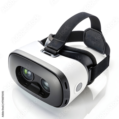 Smart VR headset isolated on white background, featuring immersive virtual reality experience, wireless connectivity, ergonomic design,