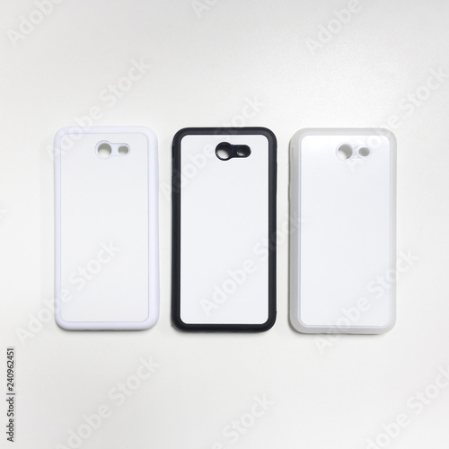 Smartphone case on white background. Blank mobile mock up or protector for design.