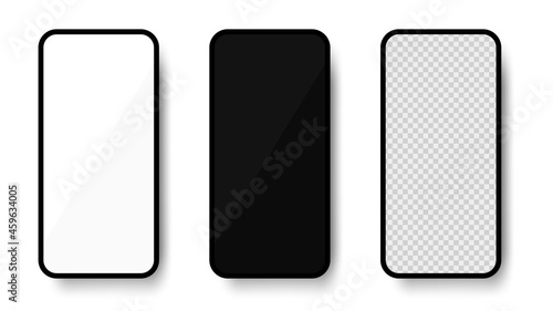 Smartphone realistic mockup. 3D smartphones with blank screens. Front view. Vector illustration