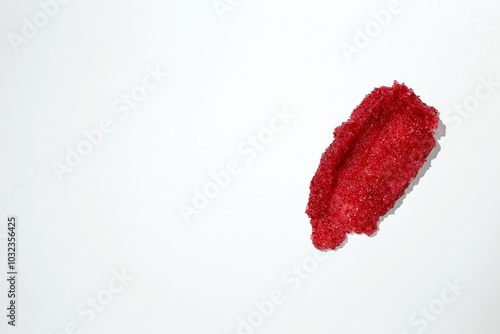 Smears of body scrub on white background. Fruit and berry body scrub texture of the swatch. Cosmetic smear