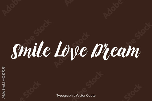 Smile Love Dream Brush Typography White Text Positive Quote on Dork Brown Background