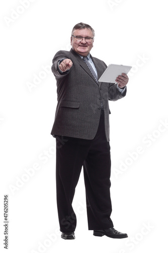 smiling business man with a digital tablet.