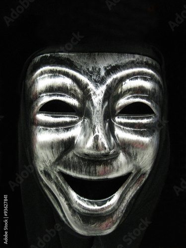Smiling carnival face mask, part of a Halloween costume.