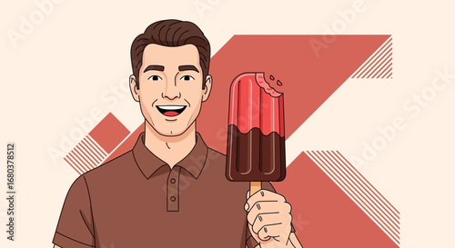 Smiling Individual Enjoying a Refreshing Frozen Treat in a Delightful Illustration