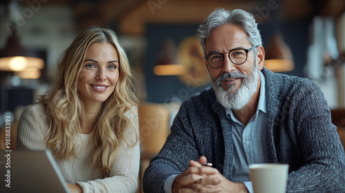 Smiling man and woman in a cafe