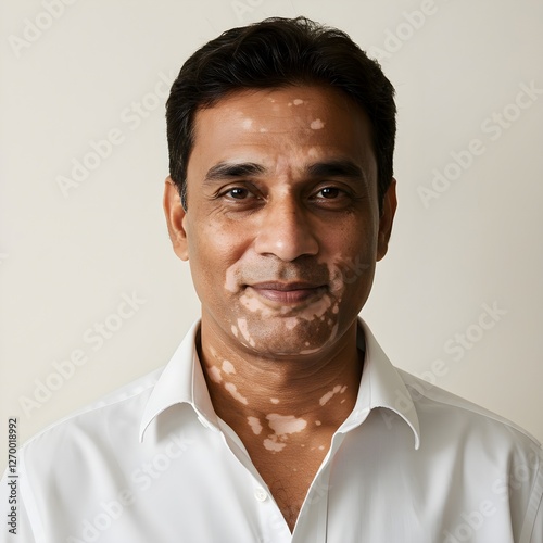 Smiling Middle Aged Man with Vitiligo Skin Condition