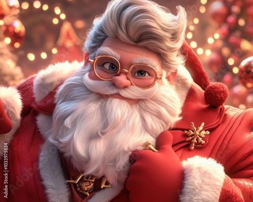 Smiling Santa Claus with White Beard and Red Suit, Spreading Festive Joy with Twinkling Lights and Holiday Decor