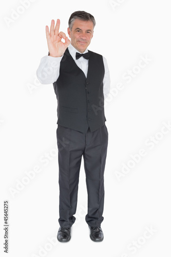 Smiling waiter showing ok sign