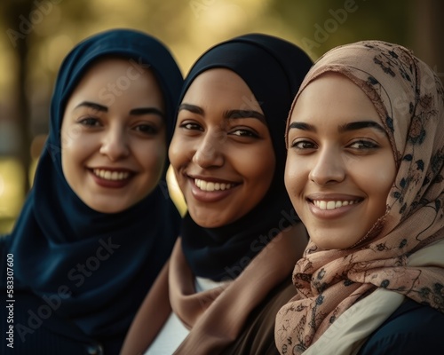 Smiling young middle eastern woment wearing a hijab looking at the camera. generative AI